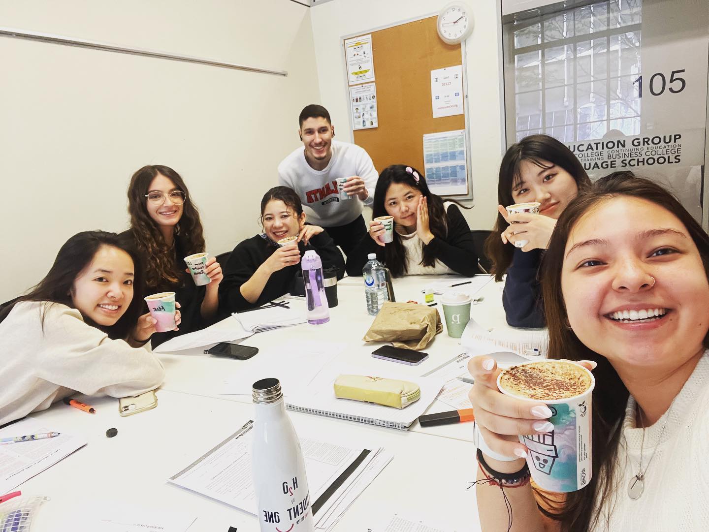 อาจารย์มีหลากหลายสัญชาติ ซึ่งช่วงแรกอาจจะฟังสำเนียงได้ยาก แต่อาจารย์สอนเข้าใจดีครับ พยายามใช้คำศัพท์ตามระดับเลเวล เพื่อที่จะให้เราสามารถเข้าใจได้ง่ายมากขึ้น เพื่อนร่วมคลาสโอเคครับ เพราะทุกคนก็ตั้งใจที่จะมาฝึกและเรียนภาษา โดยส่วนใหญ่ มีหลากหลายสัญชาติส่วนใหญ่เป็นไทย ญี่ปุ่น และโคลอมเบีย